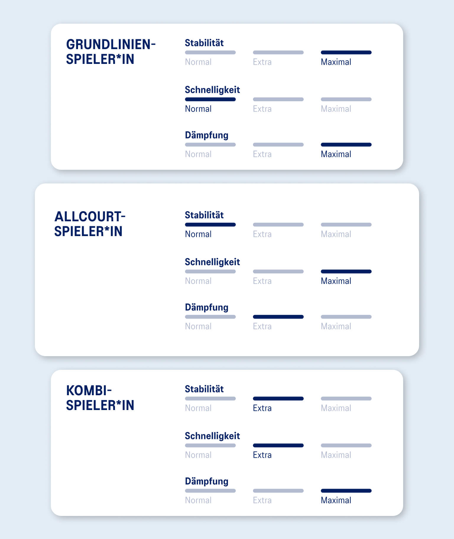 Sieh dir an, was Grundlinien-, Allcourt- und Kombispieler*innen bei der Auswahl der perfekten Schuhe brauchen.