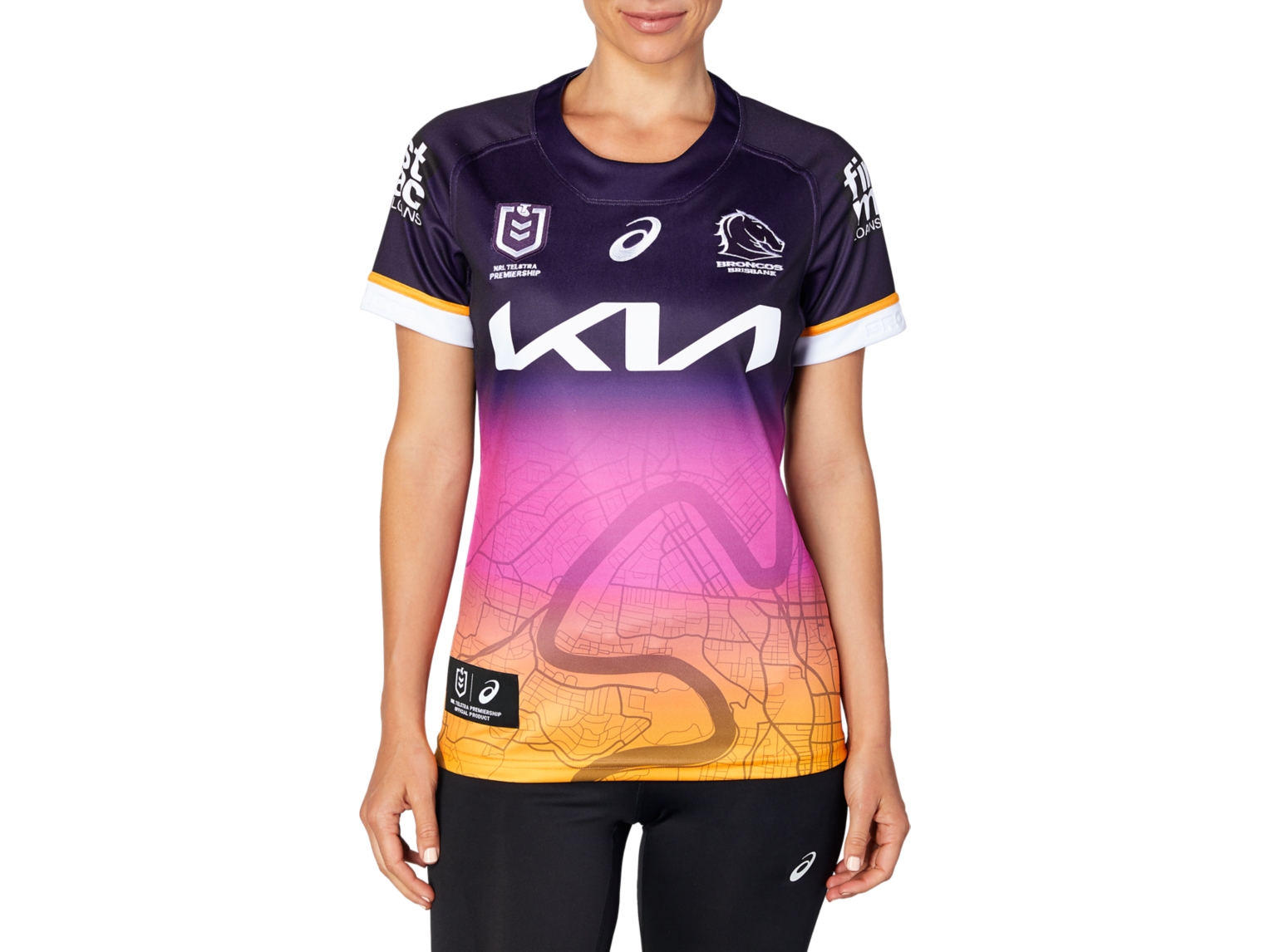 This jersey takes its colour inspiration from the bold, bright and energetic colours of the city of Brisbane. It features the Brisbane River that run through the centre of the map of Brisbane and the iconic Story Bridge overlayed on the towering city skyline.