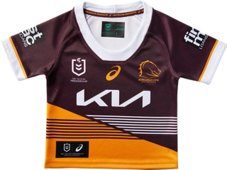 The BRISBANE BRONCOS REPLICA HOME JERSEY INFANTS features the traditional Broncos maroon & gold colourway combined with a modern angled stripe design update for 2023. A new ergonomically designed neckline and body panelling update to provide added comfort. Produced using a durable lightweight polyester performance fabric.