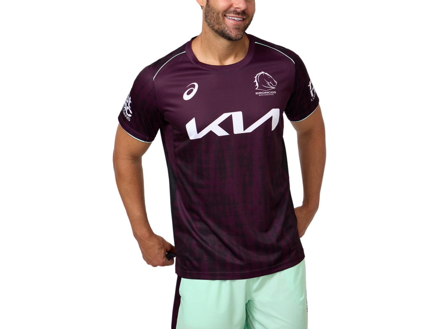 The BRISBANE BRONCOS TRAINING TEE combines a rich base tone and subtle all over graphic print, with vibrant trim highlights creating a vibrant yet clean finish.
