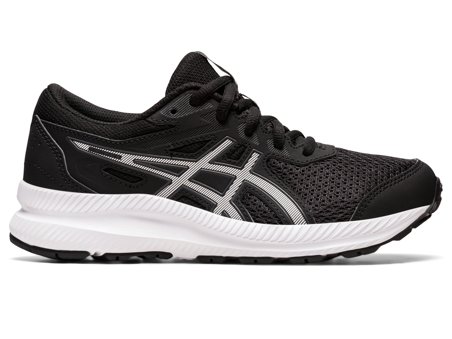 The CONTEND⢠8 GS (Grade School) shoe is designed for young feet. Details like the toecap, toe rubber stitching, and solid rubber outsole increase durability and lengthen the shoe's lifespan.