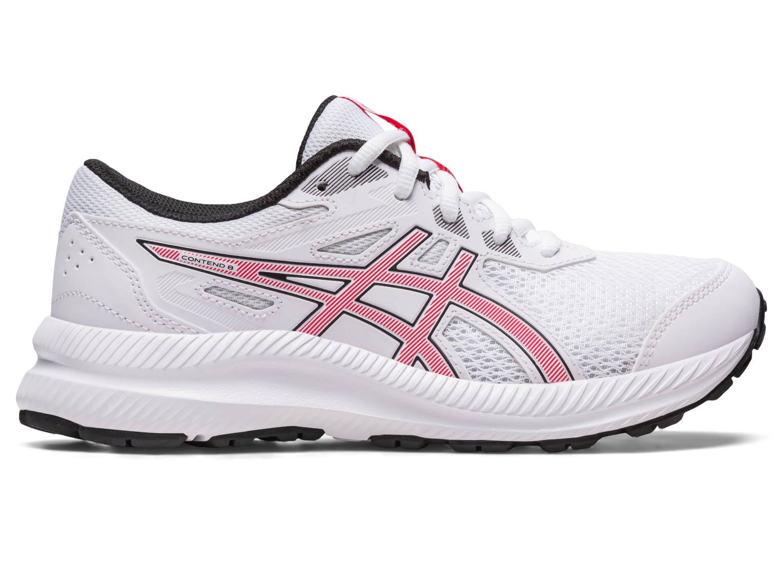 The CONTEND⢠8 GS (Grade School) shoe is designed for young feet. Details like the toecap, toe rubber stitching, and solid rubber outsole increase durability and lengthen the shoe's lifespan.