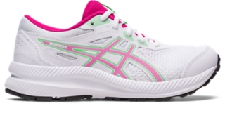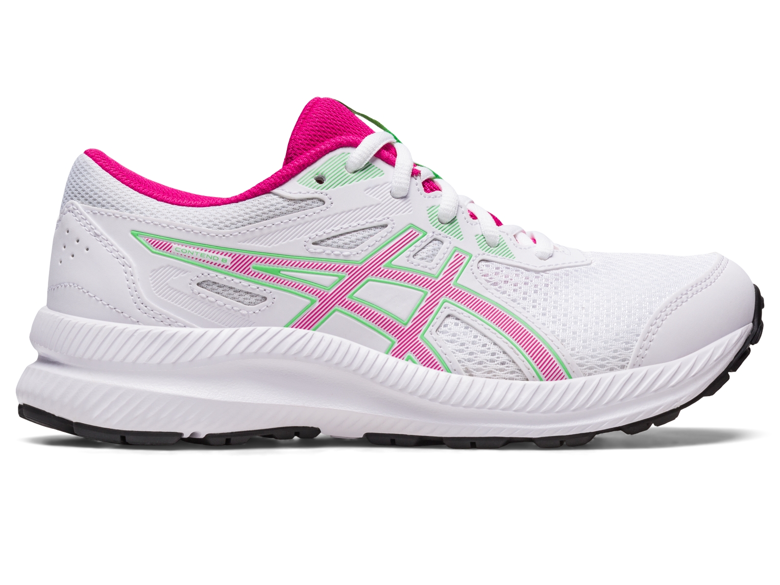 The CONTEND⢠8 GS (Grade School) shoe is designed for young feet. Details like the toecap, toe rubber stitching, and solid rubber outsole increase durability and lengthen the shoe's lifespan.