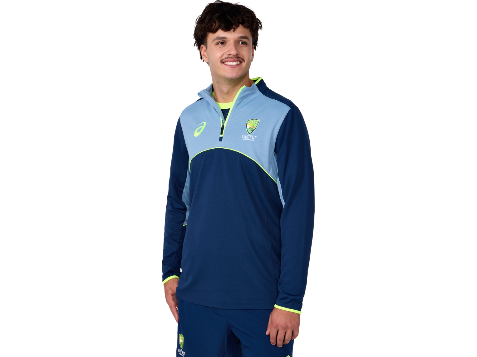 The Cricket Australia 1/4 Zip Training Top features a sustainable lightweight and breathable recycled feel made with 100% recycled yarn.