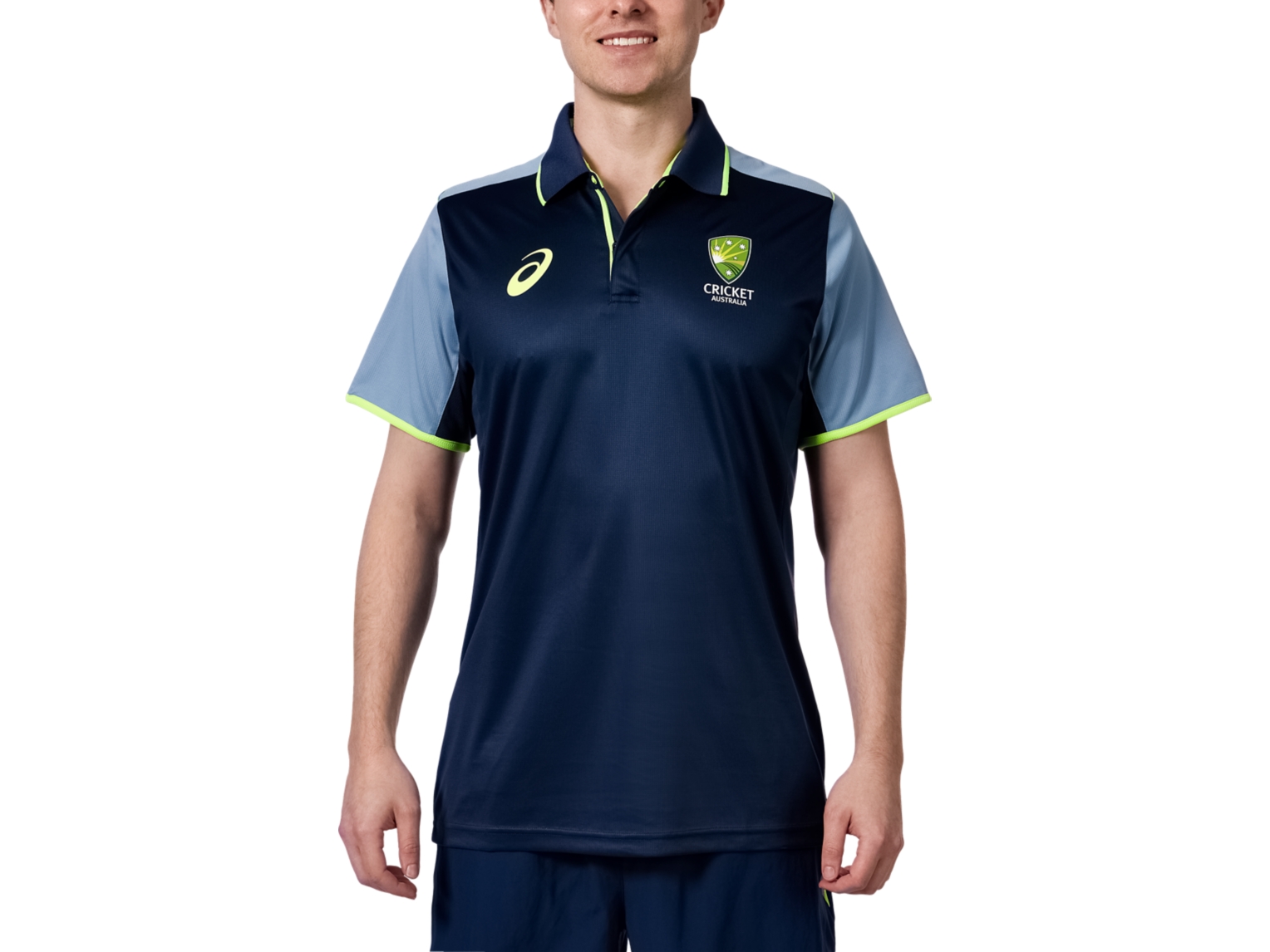 The Cricket Australia Training Shirt features a new contrast colour zipper placket front and contrast snap button.