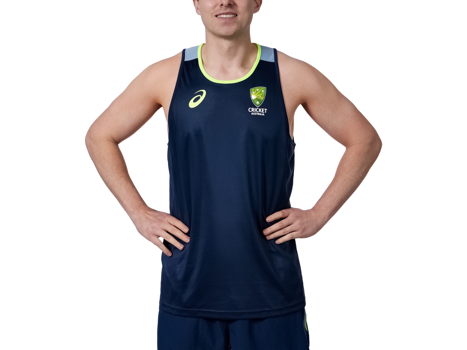 The Cricket Australia Training Singlet combines rich base tones with vibrant trim highlights creating a vibrant yet clean finish.
