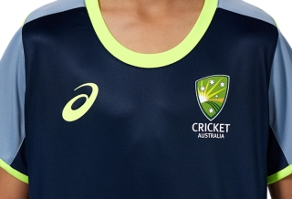 The Cricket Australia Training Tee combines rich base tones with vibrant trim highlights creating a vibrant yet clean finish.