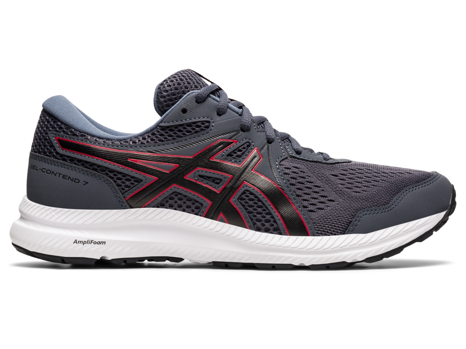 The GEL-CONTEND 7 (Extra Wide) running shoe provides excellent cushioning for runners seeking a combination of durability and support. Made for those who require more room in their footwear, this model's width is wider for a more accommodating fit.