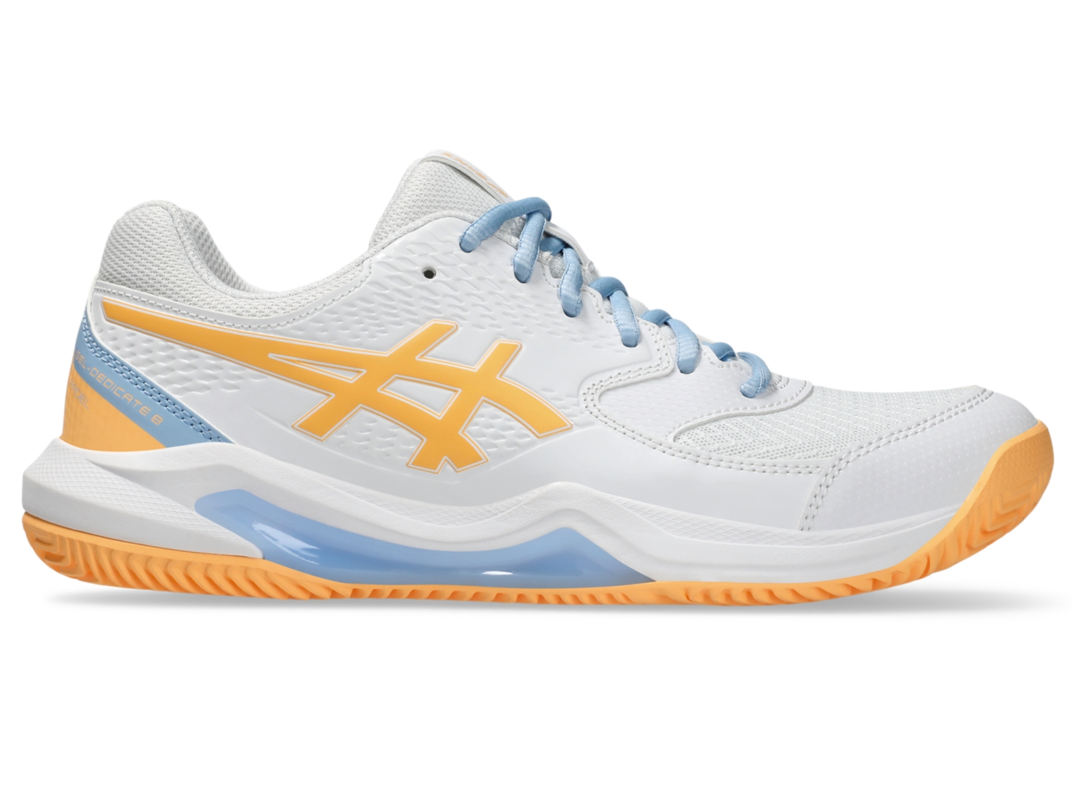 The GEL-DEDICATE⢠8 PADEL shoe offers good stability and a flexible feel for the beginner or social padel player who typically moves side to side along the baseline. The outsole configuration of this iteration is designed for the specific short, all direction play of padel.