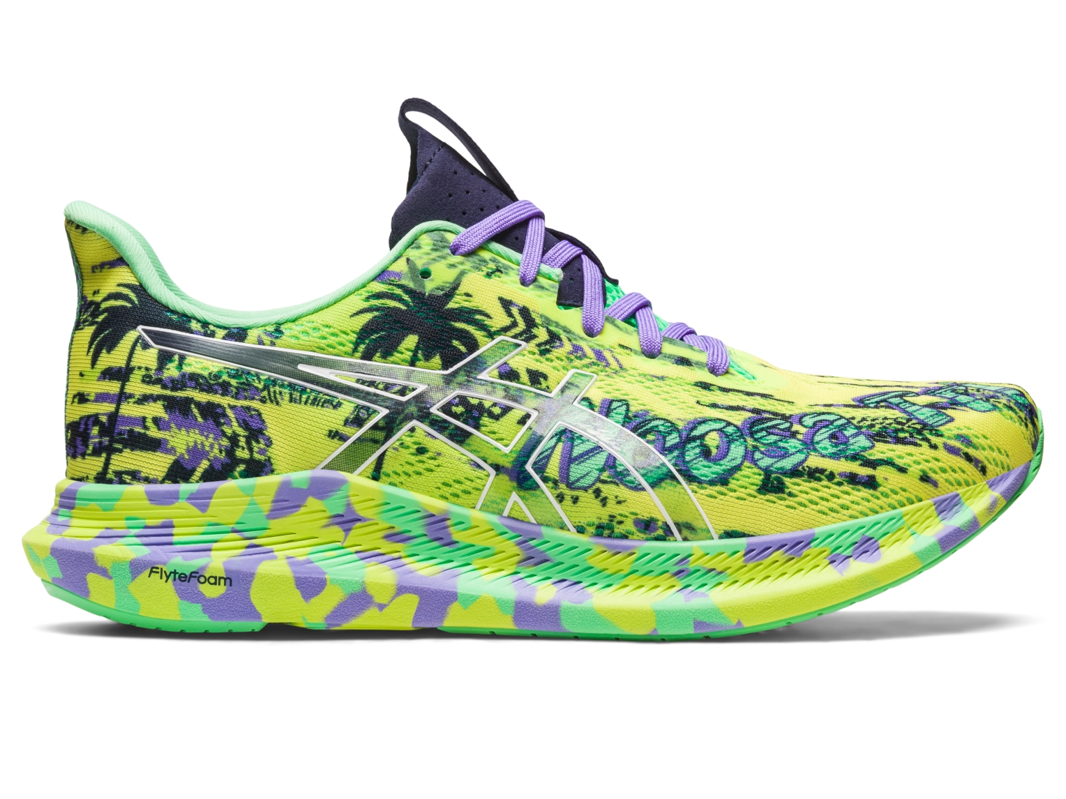 Bold colours and patterns on the engineered mesh upper are inspired by the early GEL-NOOSA⢠styles from the 2000s. Convenient features, like the tongue pull-tabs and toggled laces make the shoes easier to put on. This makes it more practical after exiting the swim stage of a triathlon or getting out the door quicker.