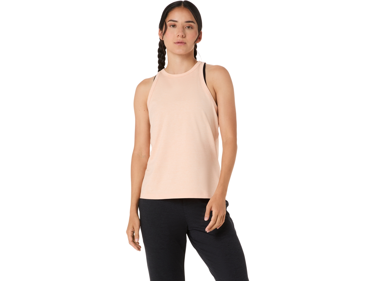 The REFINED TEXTURE SLEEVELESS TOP will be your go-to top for various activities. It features a soft stretch fabric with a smooth peaching finish that makes it a comfortable choice for daily wear.