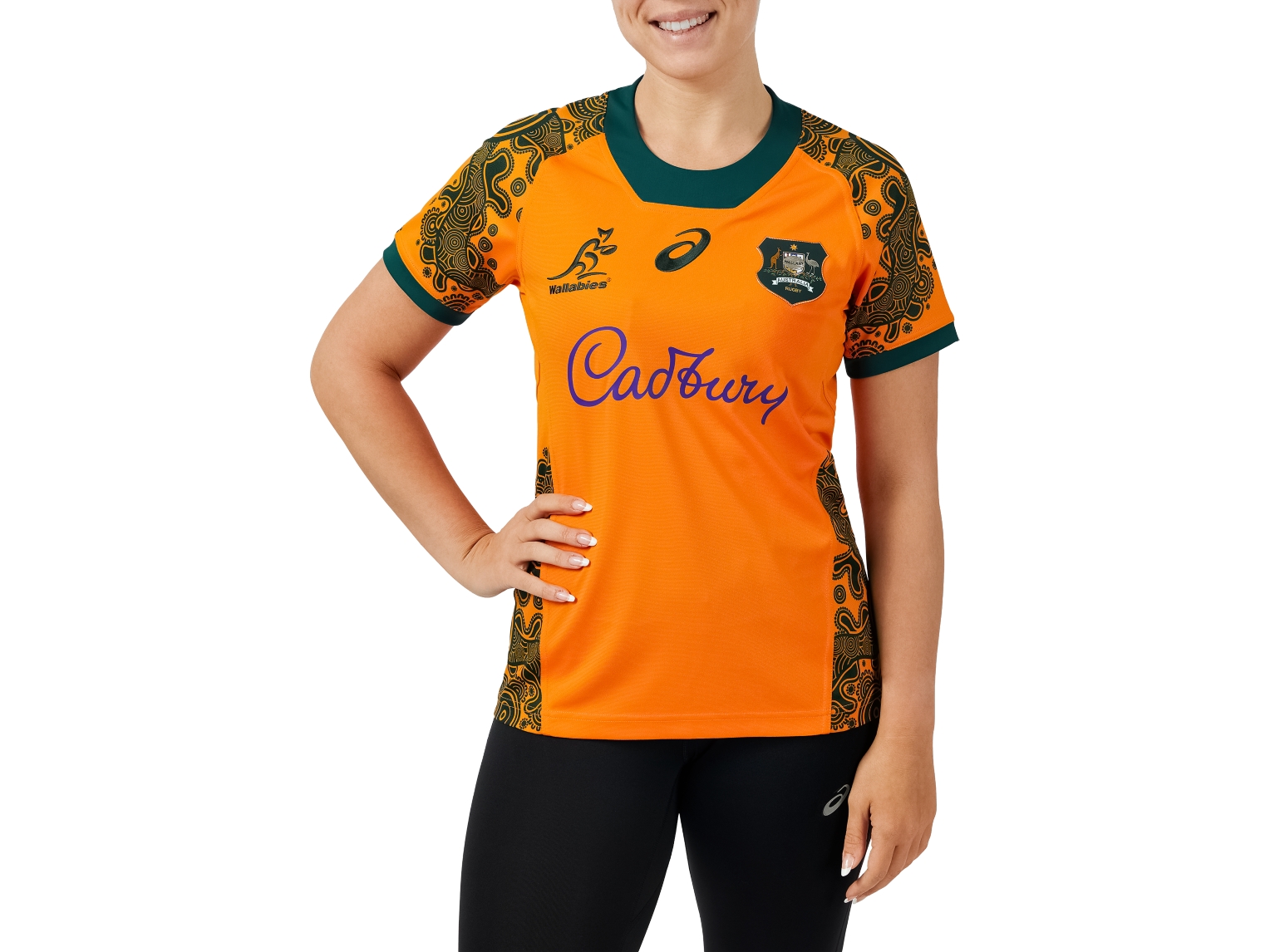 The new 2024 WALLABIES REPLICA ALTERNATIVE JERSEY WOMENS continues tradition featuring the iconic indigenous artwork on the traditional gold base with the contrast of the Wallabies green to showcase the richness of the artwork, carrying on with the modern neckline for comfort and in the traditional green colour block, sophisticated side seam lines designed to move with the body and a raglan sleeve to compliment, and embellished with a new coat of arms badge.