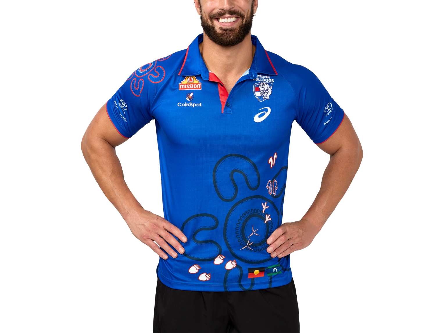 The WESTERN BULLDOGS FIRST NATIONS POLO is a supporting style for the 2025 Sir Doug Nicholls Round, celebrating the club's reconciliation journey, honouring First Nations players and their teammates.
