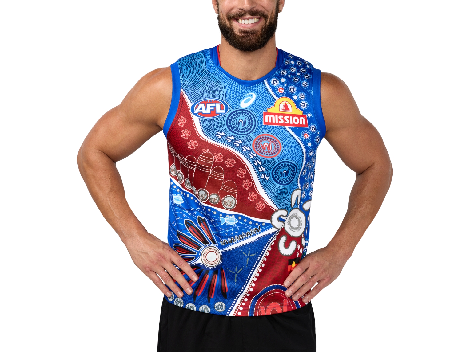 The WESTERN BULLDOGS FIRST NATIONS GUERNSEY MENS for the 2025 Sir Doug Nicholls Round celebrates the club's reconciliation journey, honouring First Nations players and their teammates.