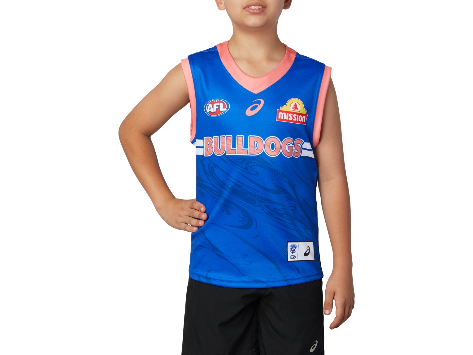 The WESTERN BULLDOGS REPLICA TRAINING GUERNSEY ROYAL YOUTH features an all over tonal global graphic and bold text print & stripe combination. A new ergonomically designed neckline and gusset panelling have been updated to provide added comfort. Produced using a durable lightweight polyester performance fabric.