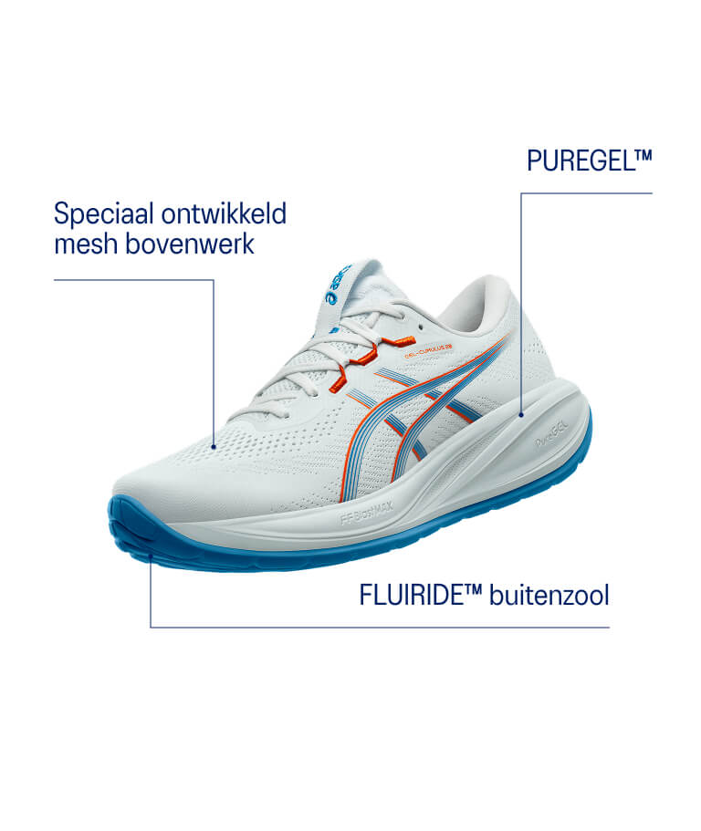 De PureGELâą technologie onder de hiel dempt de impact van elke stap, waardoor je zachter landt en extra comfortabel kunt hardlopen.