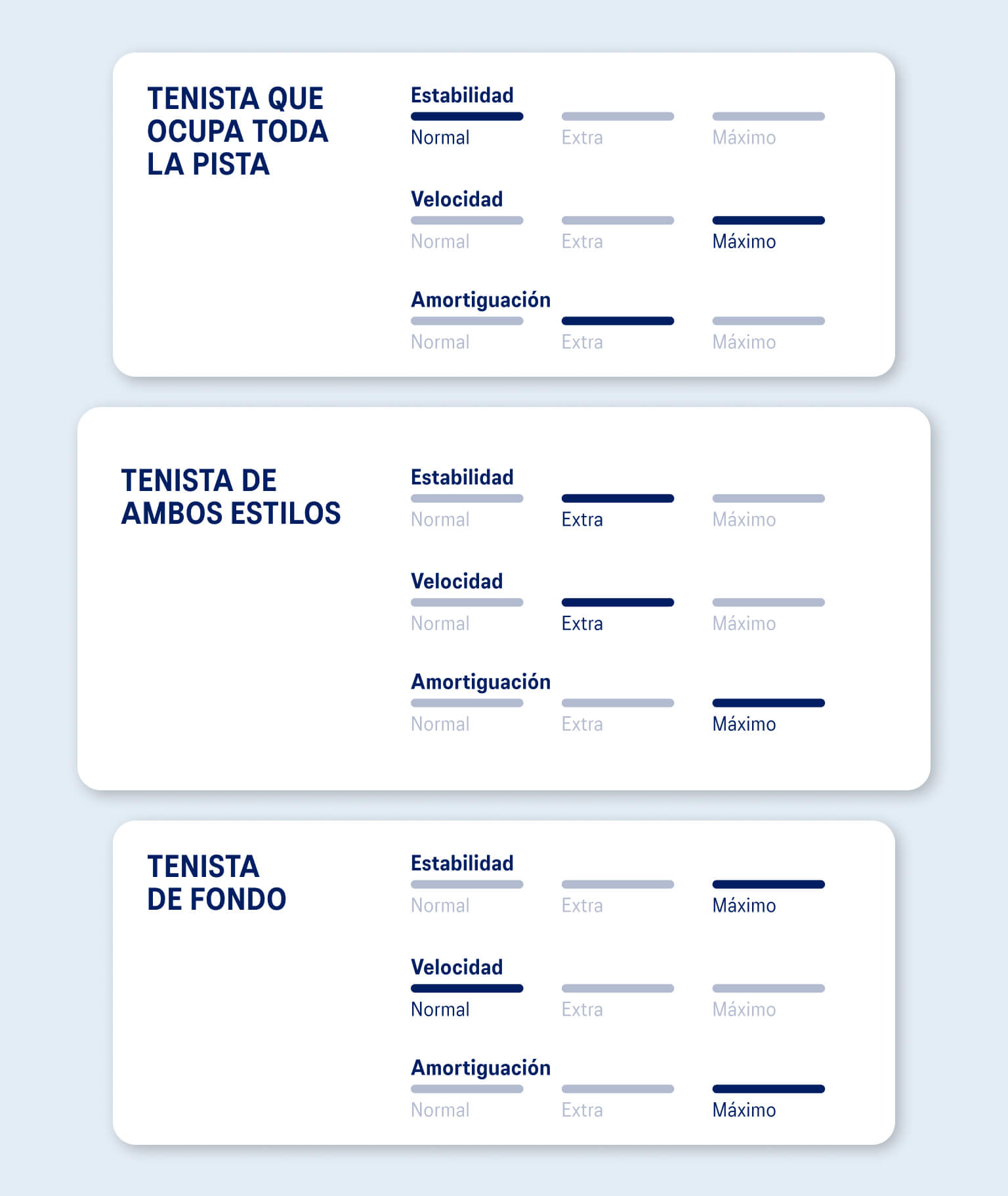 Descubre qué necesitan los tenistas de fondo, de toda la pista y los que combinan ambos estilos a la hora de elegir la zapatilla perfecta.