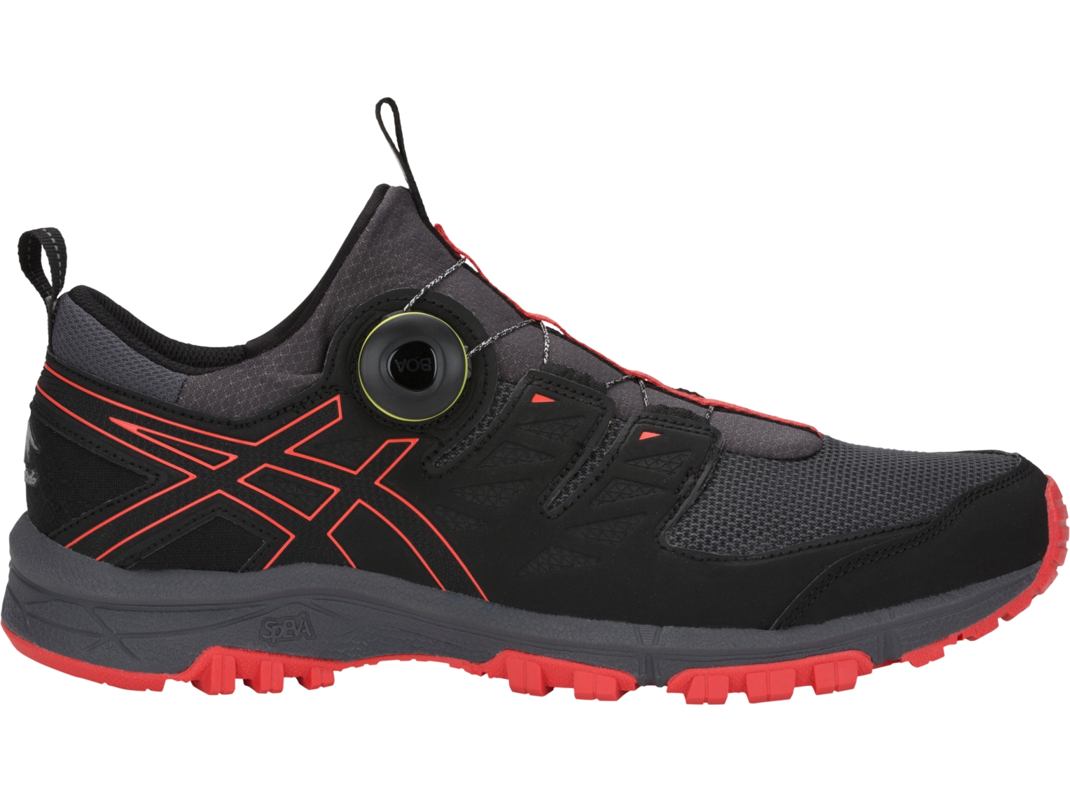 The shoe also features the ultra-fast Boa lacing system - a micro-adjustable closure dial that equates to a one millimeter of tension with each click - for full circle stability, multi-plane support and mid-foot security specifically designed for trail descents.