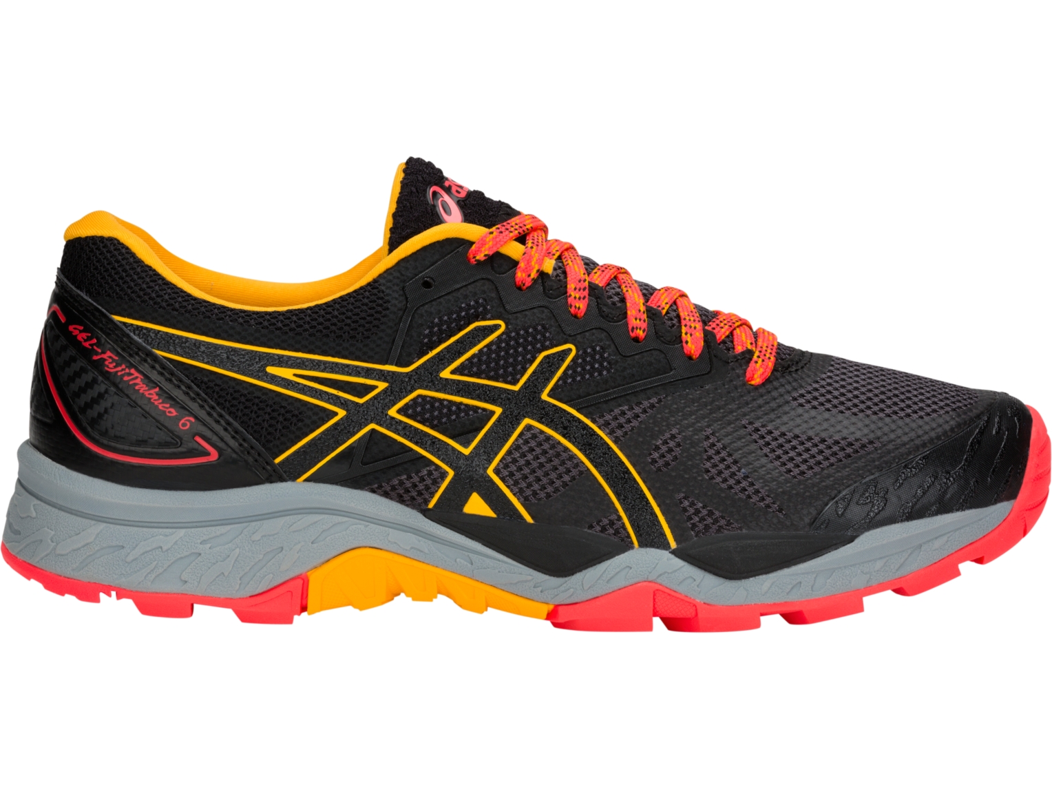 The trail specific stability Solyte injections create a lightweight midsole with excellent bounce-back and durability while the new heel lining makes the shoe more comfortable and durable. The updated upper features rugged mesh for resilience and the reengineered toe bumper reduces weight while maintaining the same level of performance youāve come to know and trust from the GEL-FujiTrabuco.