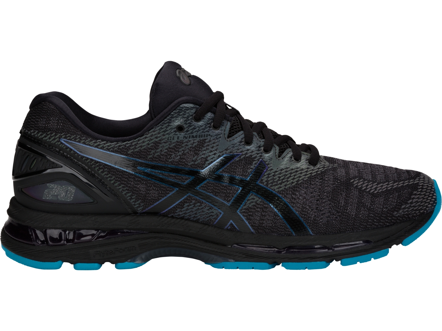 A smooth, comfortable ride that's 20 years in the making. Packed with revolutionary lightweight FlyteFoam cushioning, FluidRide midsole and discreet eyelet construction, ASICS GEL-NIMBUS 20 LITE-SHOW running shoes for men caters to neutral runners of all levels. Its gradient Jacquard-mesh FluidFit upper strategically adapts to your foot's natural motion while 3-D printed overlays offer extra support to give you a customised fit that keeps you going mile after mile. This safety-enhanced LITE-SHOW style features a 3M iridescent treatment for high visibility in low-light conditions.
