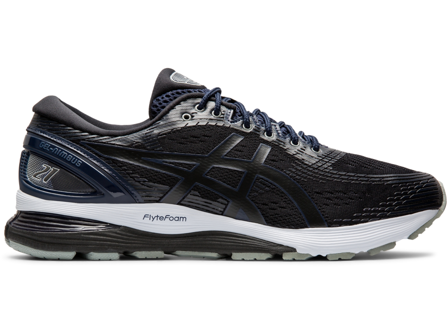 Feel the confidence to push your run further with the re-engineered ASICS GEL-NIMBUS 21 men's running shoe, designed to offer ultimate comfort and a perfect fit. These luxurious sports shoes for men feature an innovative midsole set-up that incorporates FlyteFoam Propel to give you maximum bounce on the forefoot and to help move you forward.