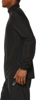 This wind and water repellent running jacket for men is designed to help you maintain your best in any weather. The jacket is constructed from durable wind and water-resistant fabric and features a regular fit and stretch knit inserts at the back, so you can move freely and comfortably.