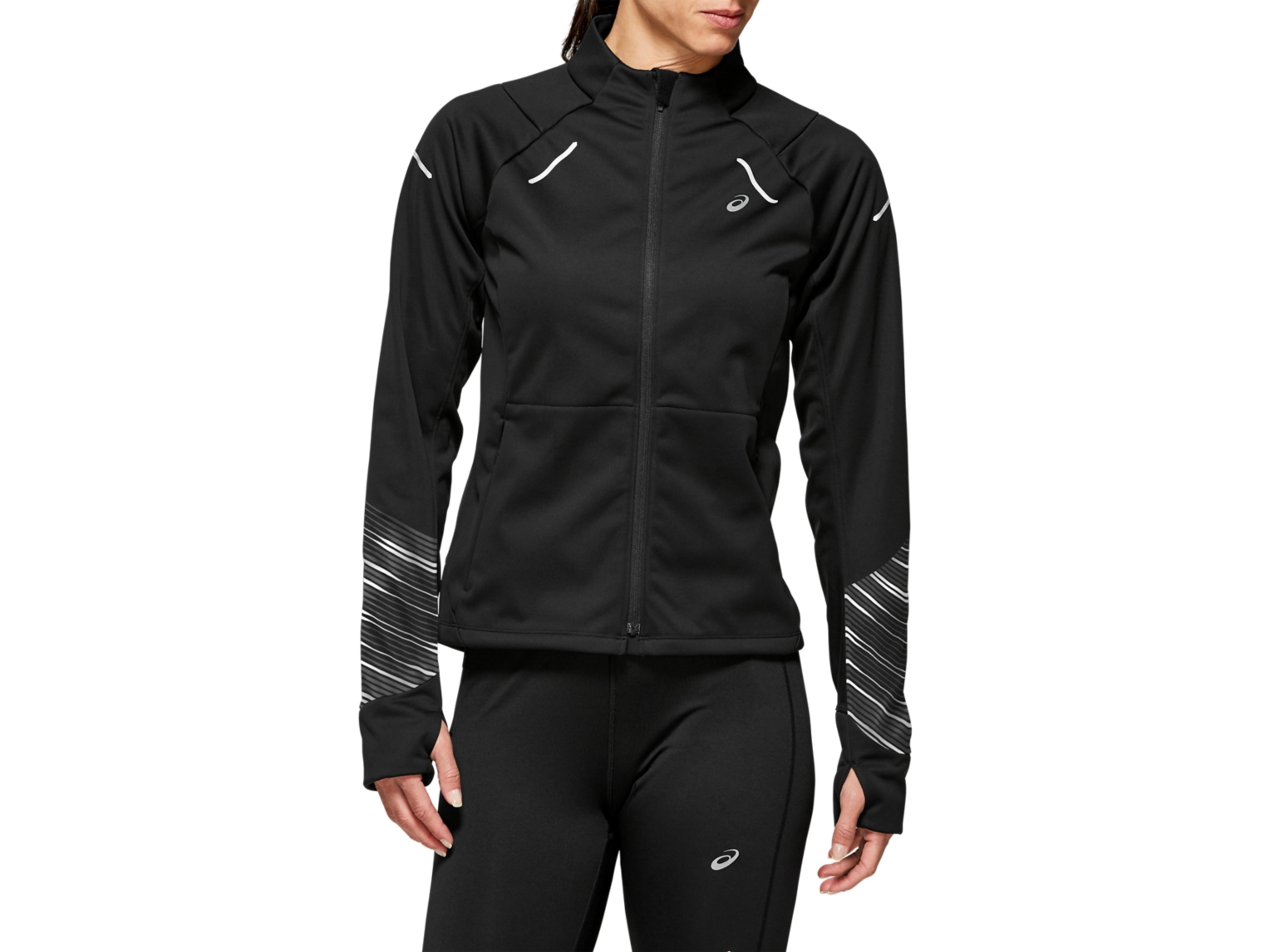 This brushed softshell jacket is part of our wind and water resistant range of clothing. Added visibility is provided by the reflective print on the lower arm, as well as our reflective ASICS branding.