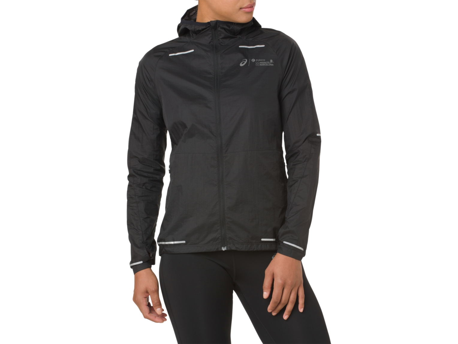 The LITE-SHOW⢠running jacket for women by ASICS is ideal for training sessions and night runs that take you past sunset. This new Barcelona Marathon design features body-mapped 360° reflectivity with strategically-placed reflective detail on the jacket, that not only makes you stand out, it allows your whole body to be recognised as a person when paired with other items in the LITE-SHOW⢠range.