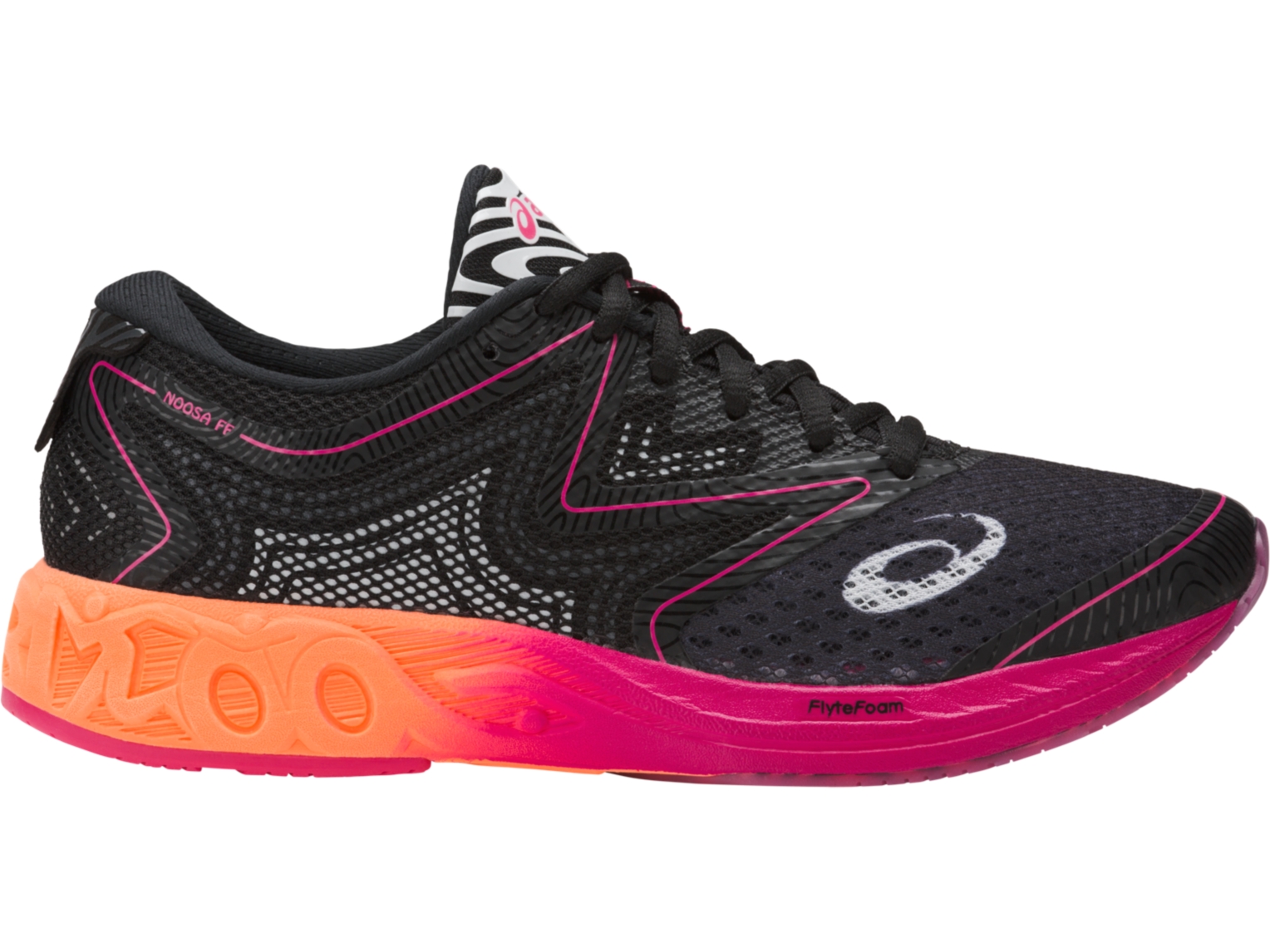 The NOOSA FF for women is your entry to the fast category. Packed with GEL cushioning in the rear foot to cushion every step without adding weight, the NOOSA FF features an Impact Guidance System (IGS) to match your foots natural movements and anatomy. Keep your footing with a grip sole and wet grip rubber fore foot while 3M reflectivity keeps you visible in low light.