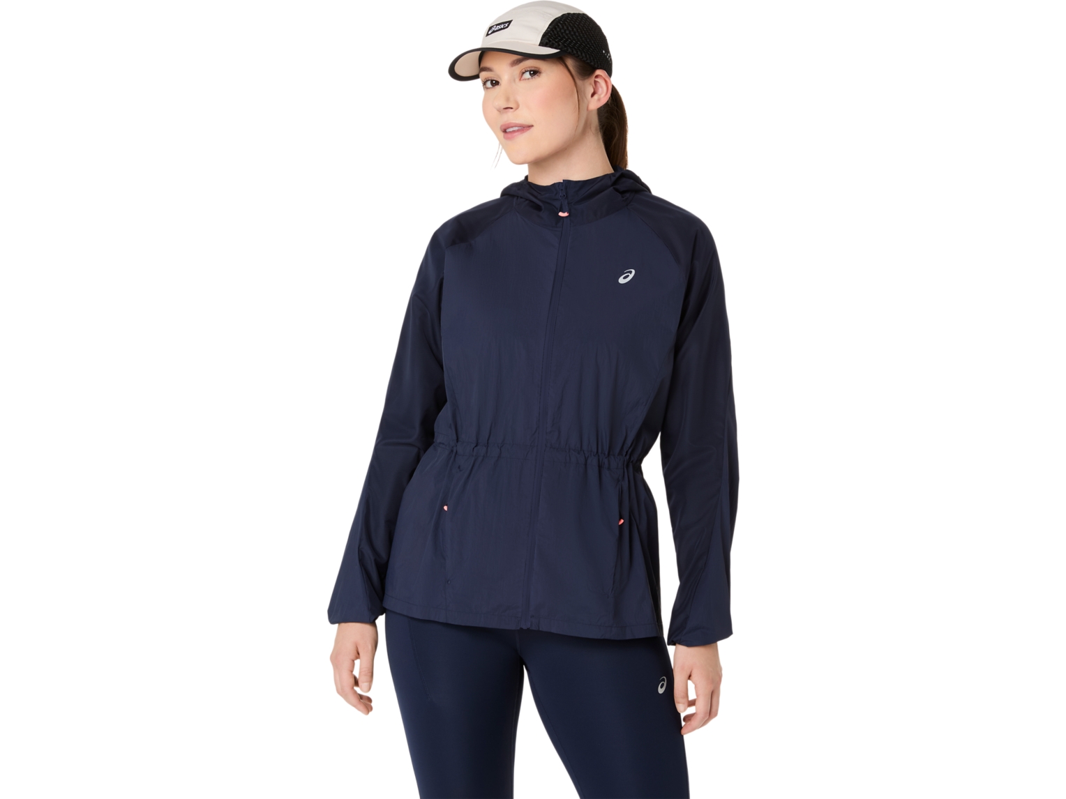 There's also a hem cord fit adjustment cord on the hood that helps keep it in place when you're in motion.