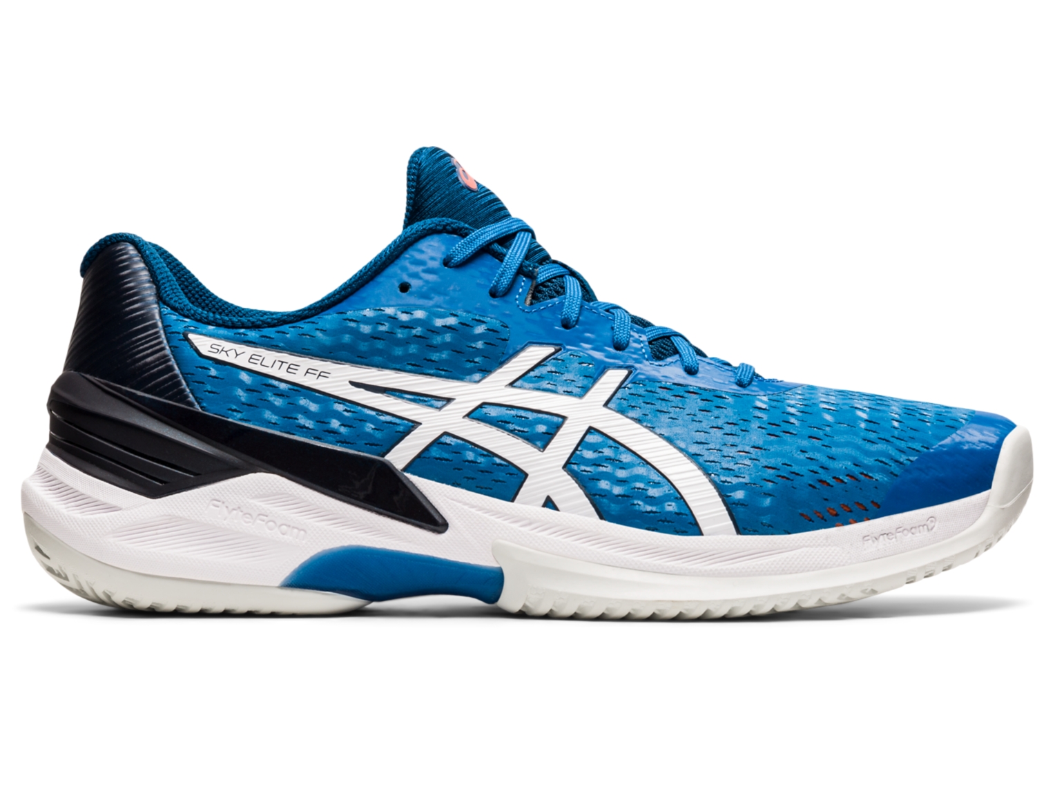 Feel the energy to return every shot with the men's SKY ELITE⢠FF volleyball shoe by ASICS. Designed for indoor courts, its N.C. RUBBER⢠outsole boasts high abrasion resistance and excellent grip, meaning you can make quick turns and jumps with ease.
