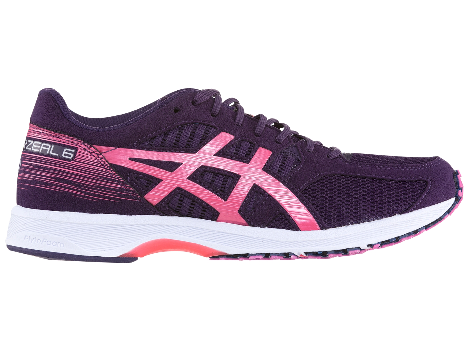 Every element of the womenās TARTHERZEAL 6 running shoe by ASICS is engineered for speed. The successor of the DS Racer is a super-lightweight running shoe with a full FlyteFoam midsole, complemented by ASICS GEL cushioning. You'll experience the ultimate soft landing as you push through to the finish line, ready to beat your personal best.