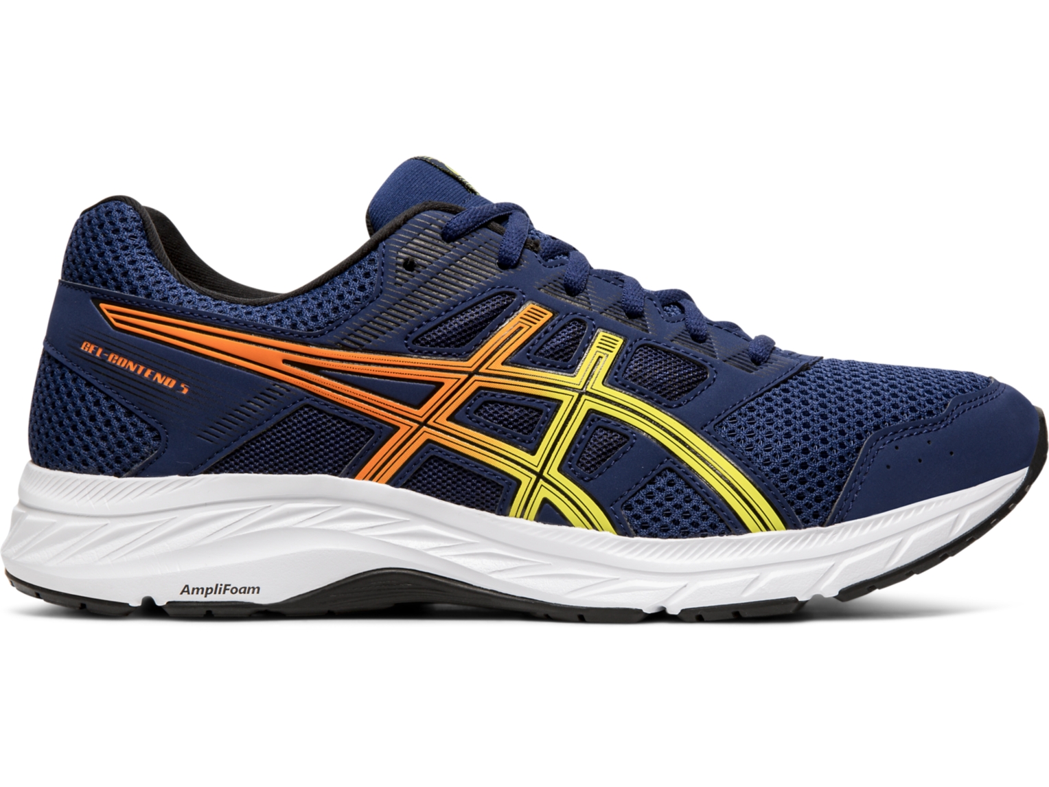 Go further than ever before with the GEL-CONTEND 5 men's running shoe from ASICS. Created to offer the stability required to help you go the distance, this shoe offers a supportive fit thanks to an internal heel counter. Features including a removable sockliner, rearfoot GEL and an AmpliFoam midsole also ensure your foot remains cosy and cushioned every step of the way.