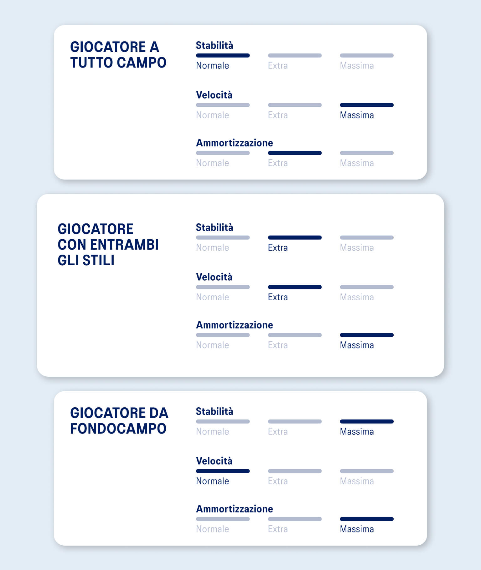 Per chi cambia stile con facilitĂ , unendo il controllo da fondocampo e gli attacchi a rete per adattarsi a qualsiasi avversario o superficie.