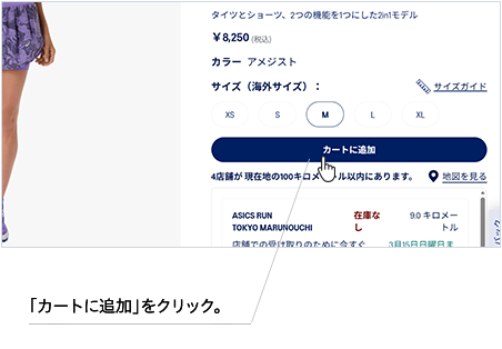 ご希望サイズを選択のうえ、「カートに追加」をクリックしてください。
