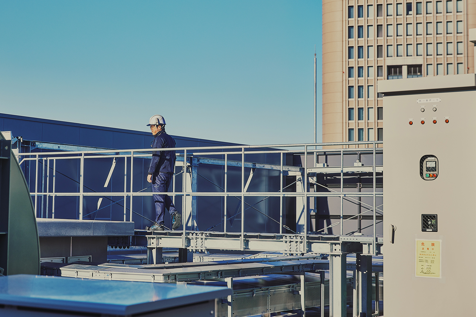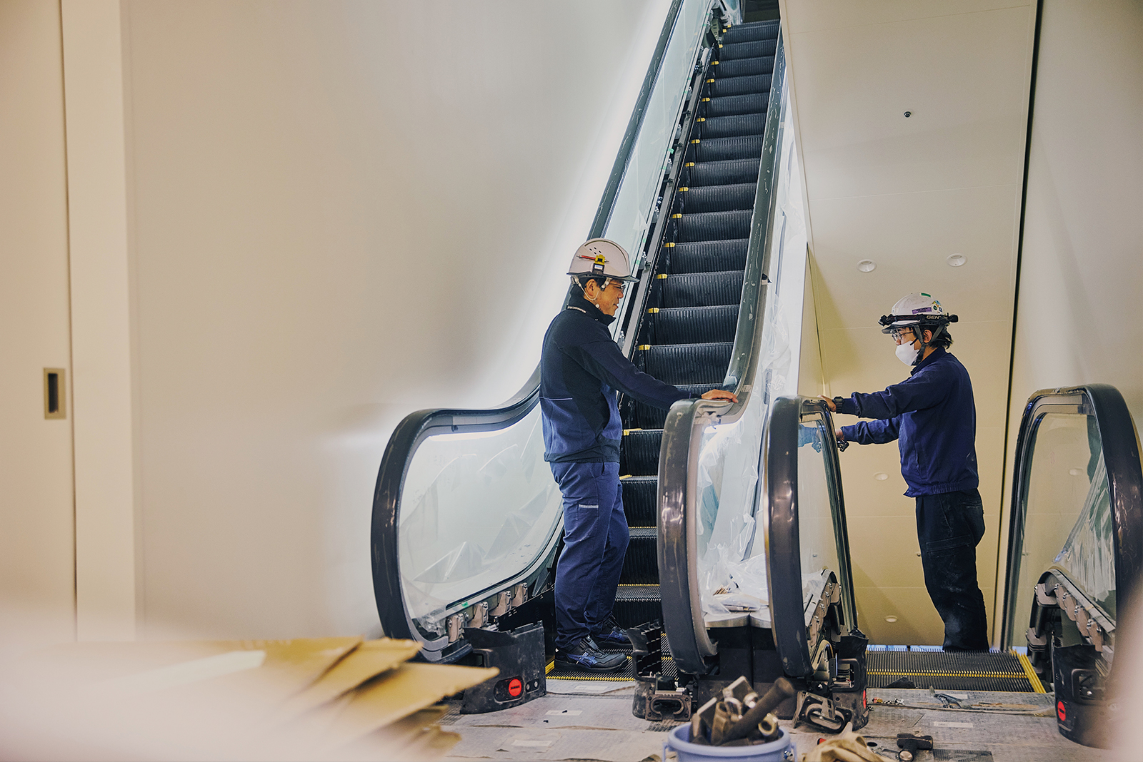 建èšäžã®ãã«ã«ãšã¹ã«ã¬ãŒã¿ãŒãèšçœ®ããå Žé¢ã§ã¯ããšã¹ã«ã¬ãŒã¿ãŒãã®ãã®ã®çºæ³šãèšçœ®æ¥è ã®æé ã¯ããšãããäºåã«æ±ºããææ¥ãŸã§ã«èšçœ®ãå®äºãããããäœæ¥ã®é²æãã¯ãªãªãã£ã飿¥ãã§ãã¯ããã®ãæœå·¥çŸå Žç®¡çè ã®ä»äºãåœç¶ãªãã巚倧ãªãã«å»ºèšã«ãããŠã¯ãããããäžé£ã®äœæ¥ãåæã§åæå€çºçã«é²ããããŠããã