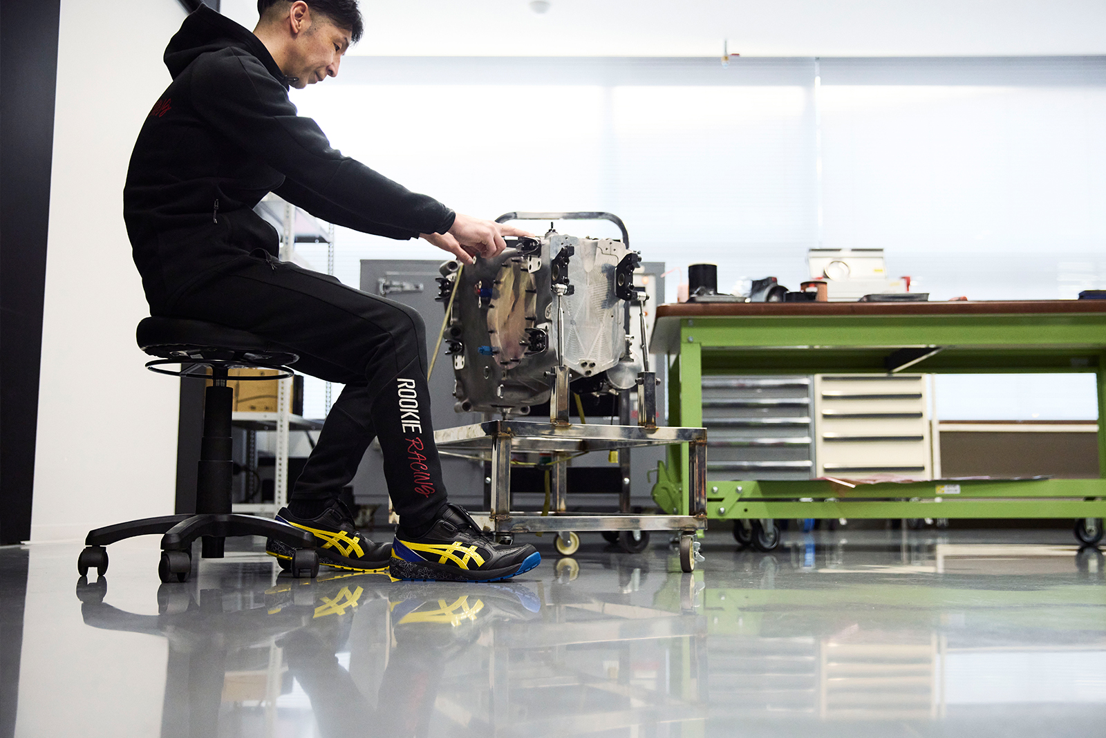 ææãªè¥æãå€ãããããã®ããŒã ãšãããROOKIE Racingã ãã圌ãã®è¶³å ãçºè¶³æããæ¯ããŠããã®ãASICS WORKINGã®ã·ã¥ãŒãºãèäºèªèº«ãé·ãã¡ã«ããã¯äººçã®ã»ãšãã©ãASICS WORKINGã®ã·ã¥ãŒãºãšéãããŠãããããã°ãããŒãŠãŒã¶ãŒã ã