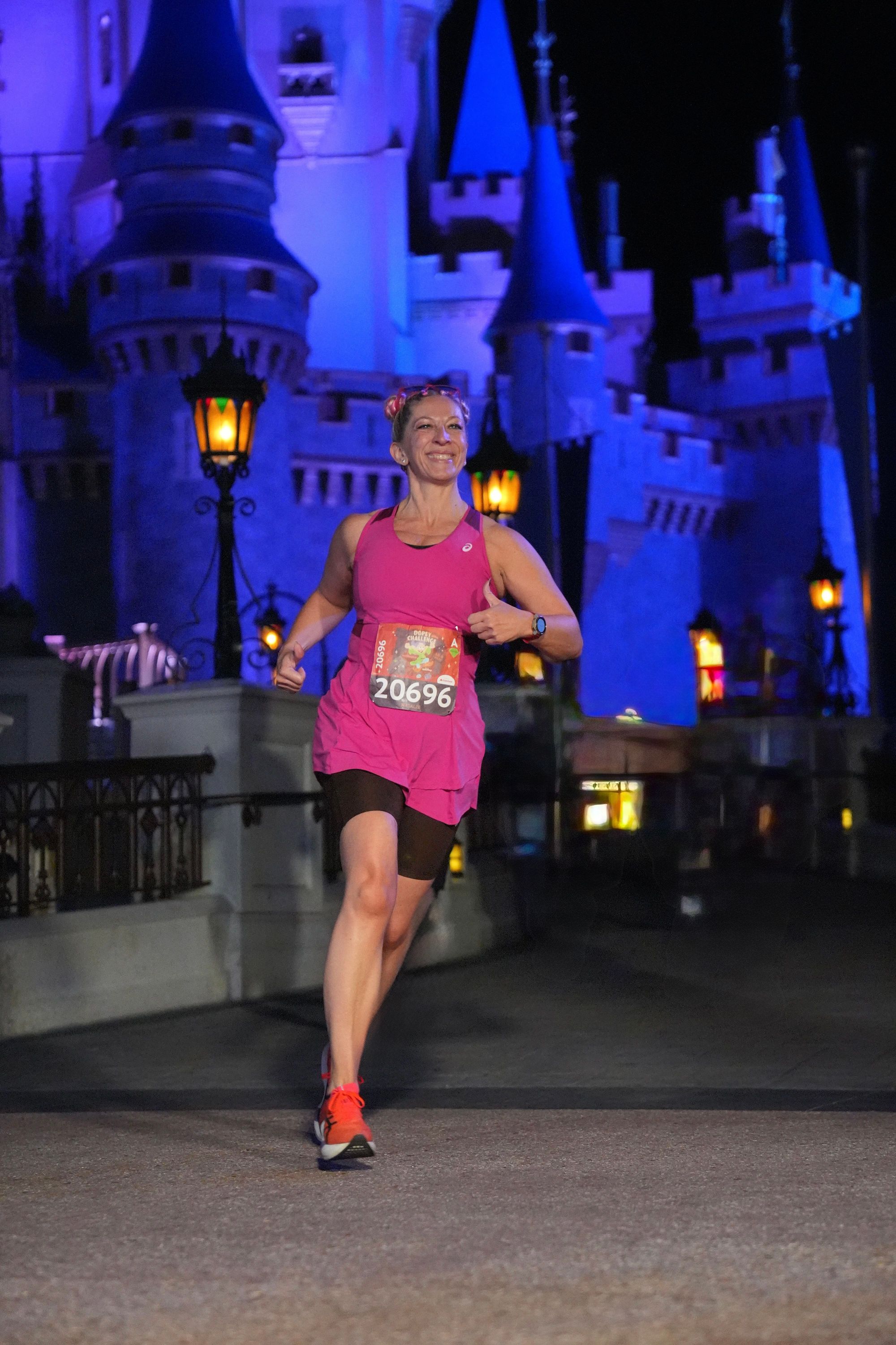 begin van iedere run. Je loopt vervolgens in het donker door de Disney parken, een magisch gevoel omdat