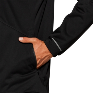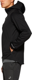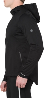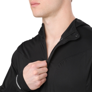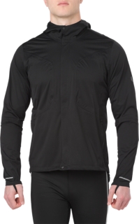 The full zip front provides easy access and zipper cover at the top prevents chaffing and irritation on your neck and chin. A large reflective panel on the hood and small reflective elements on the back make this running jacket ideal for night and low light training; plus zippered hand pockets - with internal stash pocket - securely stores your long run essentials. Adjustable cords on the hood and sides of the lower hem provide the perfect fit and the extended rear hem makes for comfortable movement and maximum coverage.