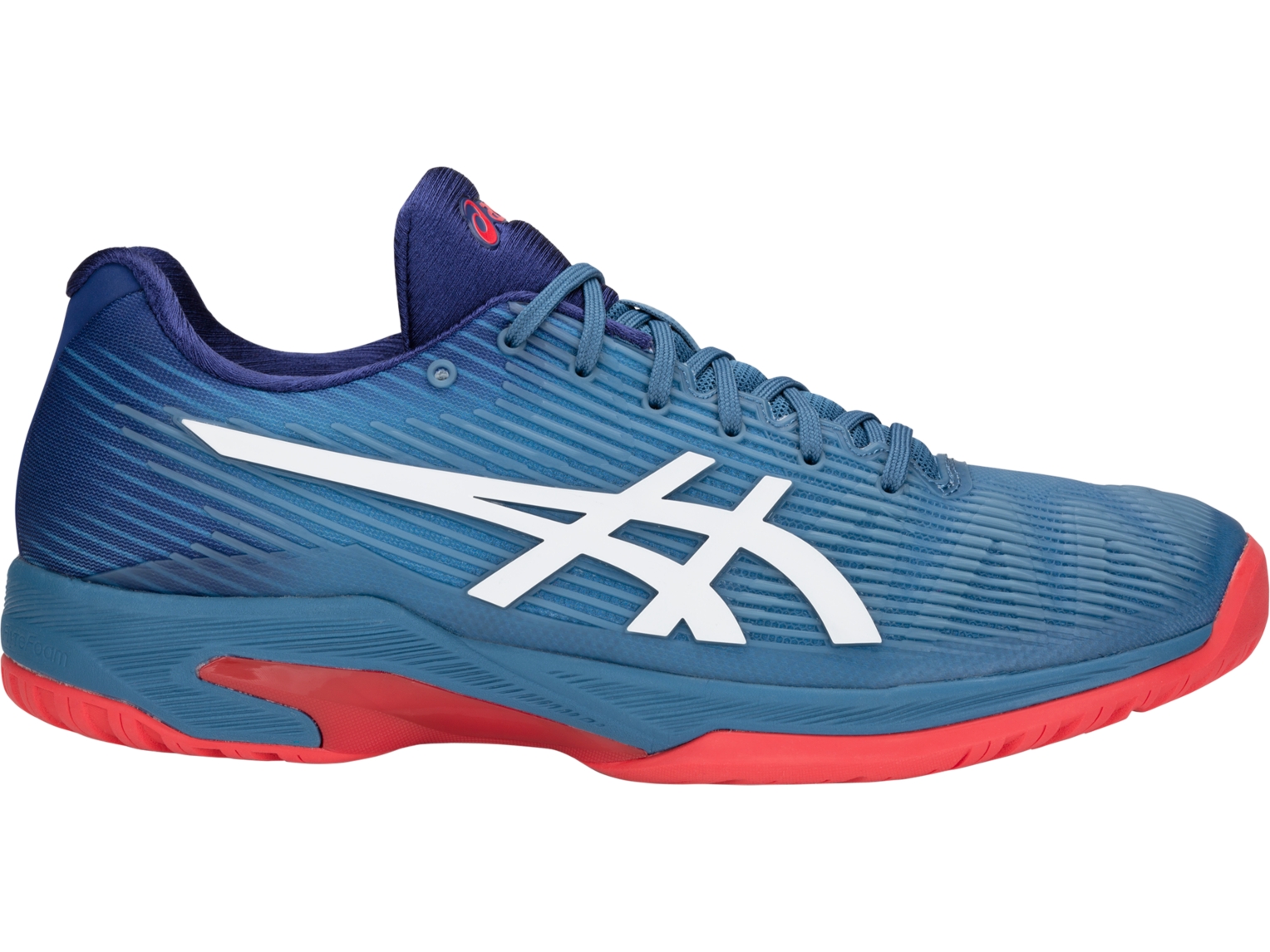 As sapatilhas de ténis SOLUTION SPEED™ FF tem uma sola de ténis antiderrapante AHAR™, gáspeas FLEXION FIT™ e proteção PGUARD™ na biqueira, bem como uma língua anti-cascalho que elimina a sujidade e o lixo, para que nada atrapalhe o seu jogo.