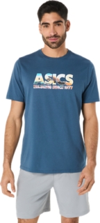This comfortable knit short sleeve tee takes inspiration from Mt Fuji. The front graphic features the phrase, ""ASICS GLOBAL RUN CLUB,"" which is rendered with a cherry blossom and mountain peak print.
