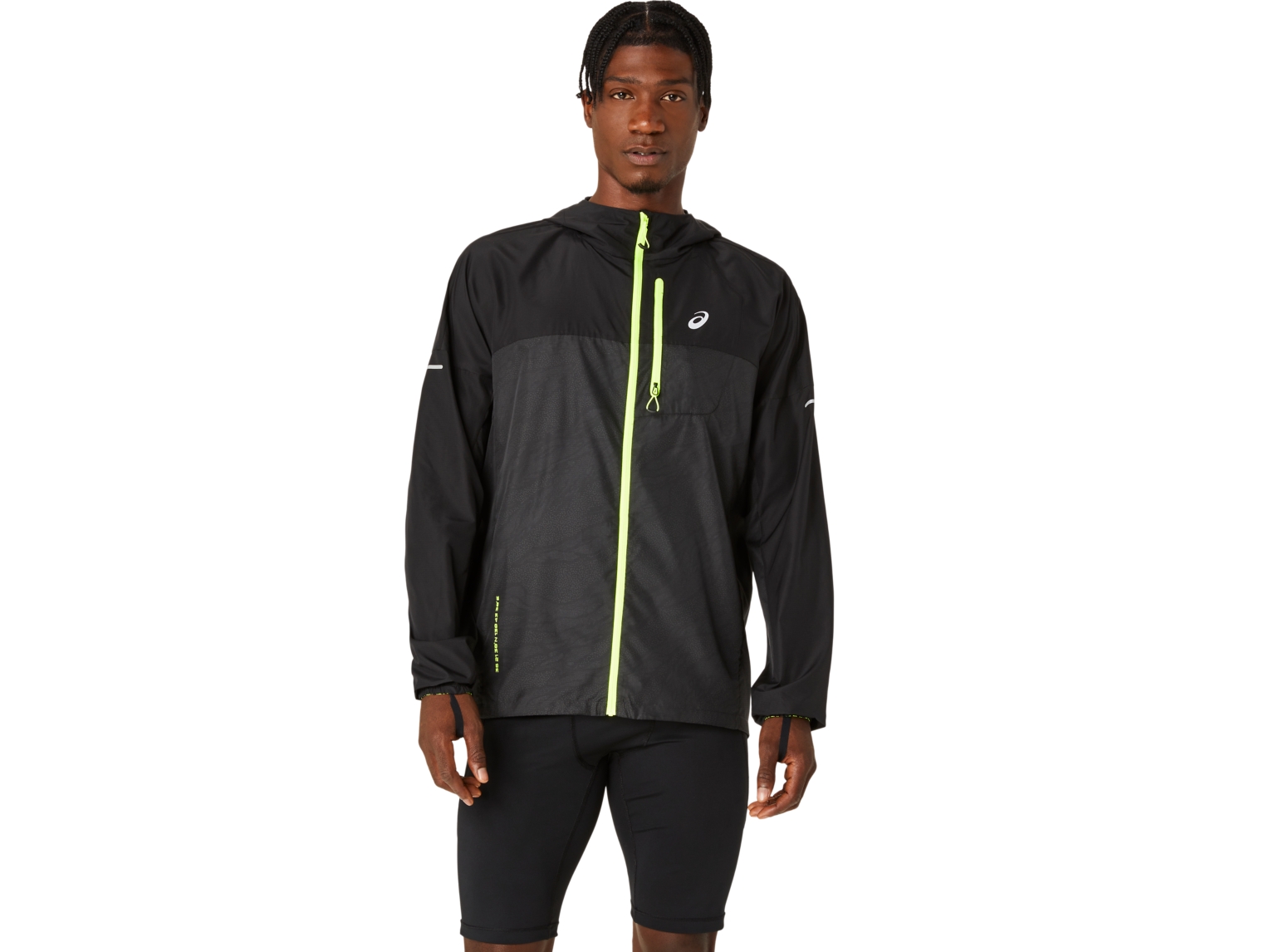 The chest pocket can be used for storing running essentials and for packing the jacket into.