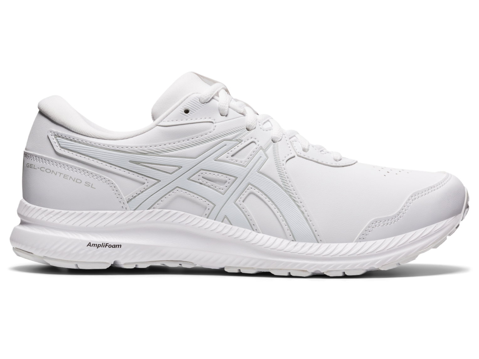 Go further with the GEL-CONTEND⢠SL athletic walking shoe. This shoe offers a supportive fit thanks to an internal heel counter, while rearfoot GEL® technology and the AMPLIFOAM⢠midsole help your feet remain cushioned and comfortable.