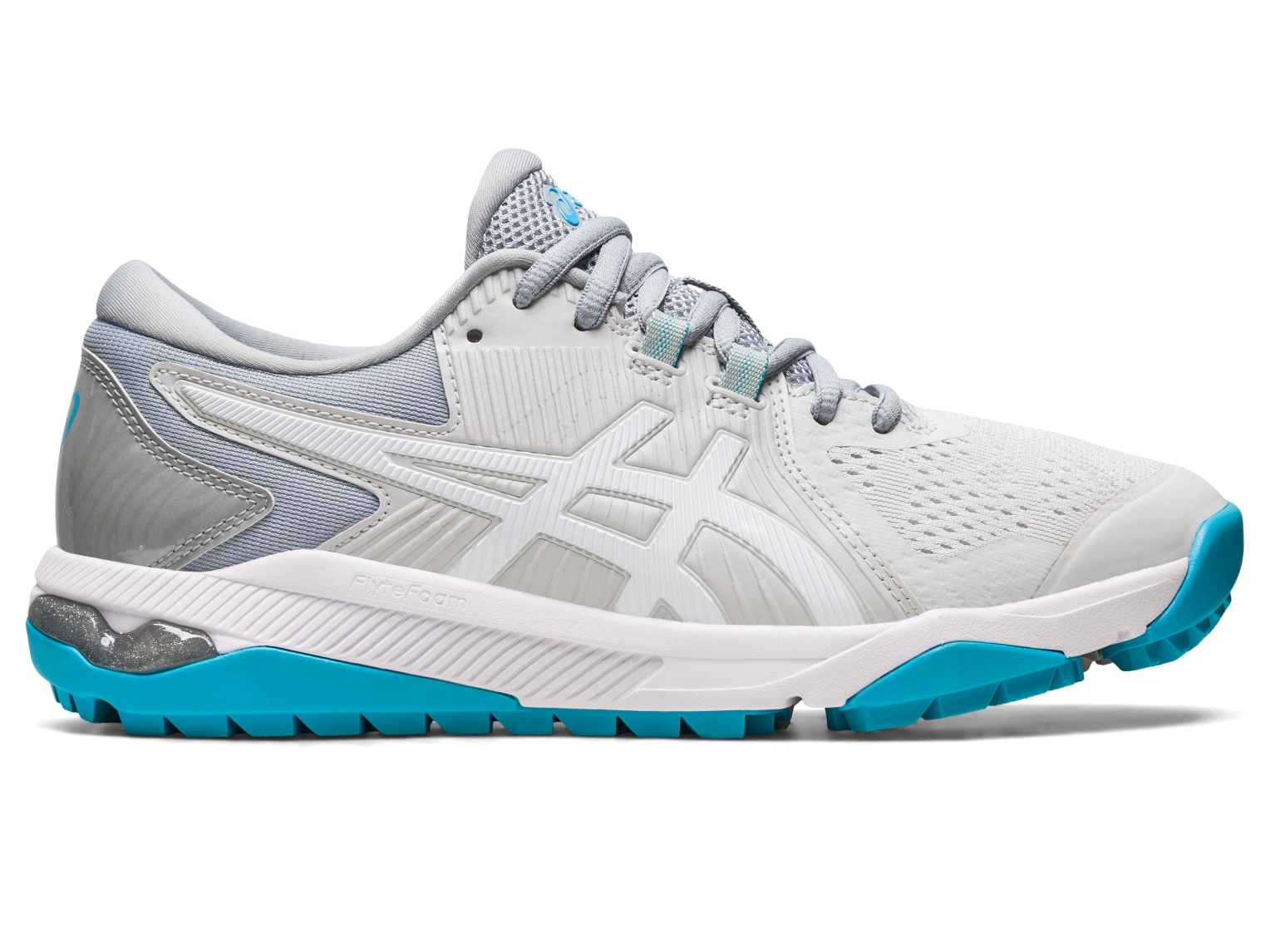 The GEL-COURSE⢠Glide golf shoe provides improved traction and cushioning for the fairway with a low-profile, yet sophisticated design. The upper is designed with a seamless toe section and an integrated quarter-panel to reduce forefoot irritation, while the internal heel counter adds greater rearfoot stability. This technology is complemented with GEL® technology in the heel and a FLYTEFOAM® technology application in the midsole to supply a blend of lightweight comfort and ample cushioning. Excellent for increasing stability, this shoe incorporates a supportive midfoot paneling and an internal molded heel counter, while the outsole is constructed with a spiked pattern to boost traction throughout the course. With an insole that provides additional cushioning and ventilation, the GEL-COURSE⢠Glide golf shoe equips you with the tools to assist in nailing powerful drives down the fairway and sinking putts.