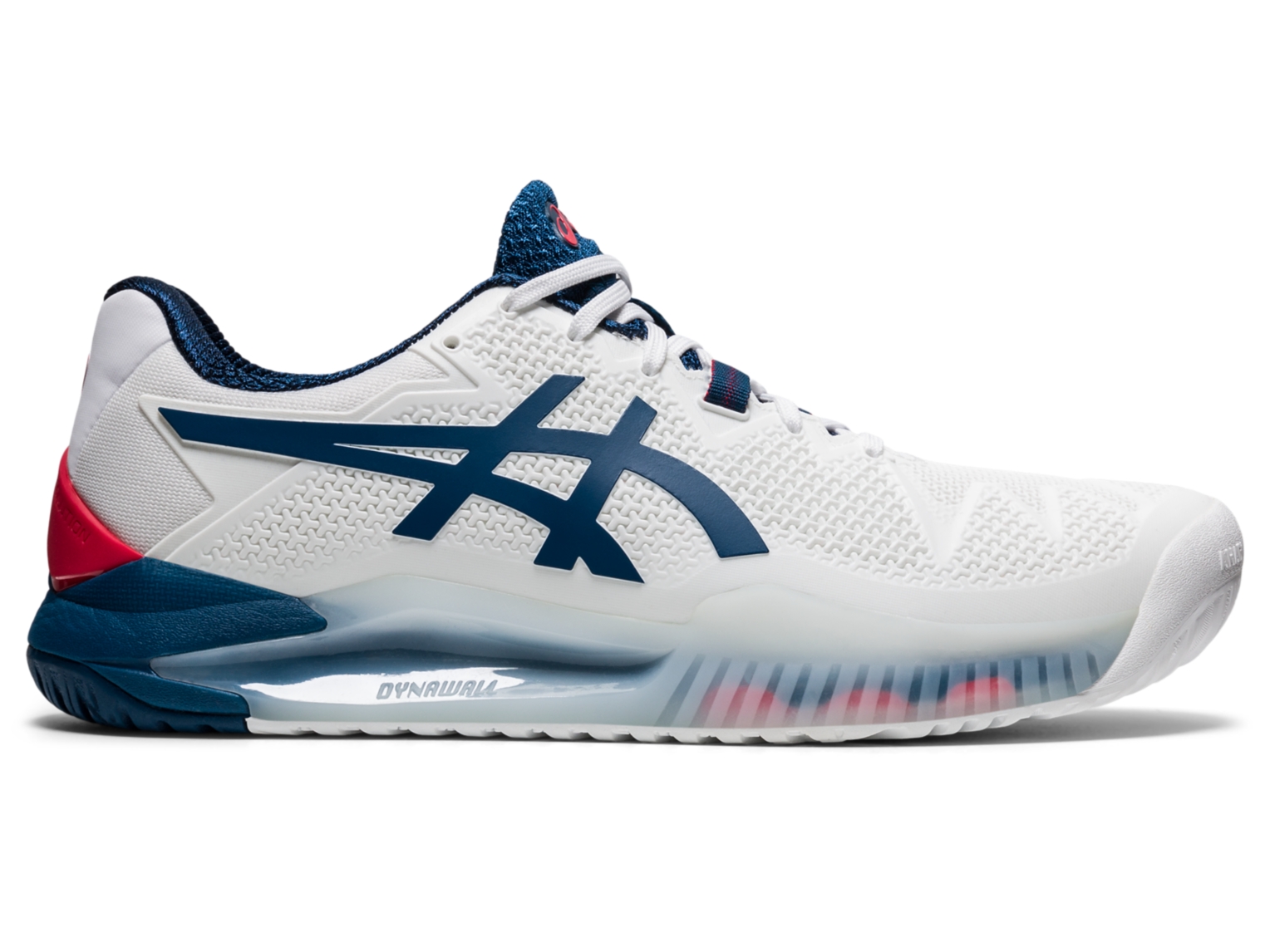 The GEL-RESOLUTION® 8 tennis shoe promotes a responsive stride with a close-to-the-court feel. The FLEXION FIT® upper provides form-fitting support with the integration of DYNAWALL⢠technology, which offers added midfoot stability during lateral movements and coast-to-coast coverage. Implementing a torque control feature in the heel counter, this shoe is also designed to help maintain a locked in feel during quick transitions. Featuring GEL® technology cushioning in the heel and midfoot, this shoe helps reduce the impact of shock from abrupt stop and go movements on court. Additionally, the model also incorporates an AHAR® compound in the outsole that works in conjunction with the PGUARD⢠toe protector to increase traction on court and reduce the overall level of wear. Creating an accelerated response with a natural close-to-the-ground feel, the GEL-RESOLUTION® 8 tennis shoe helps you approach your matches with confidence.