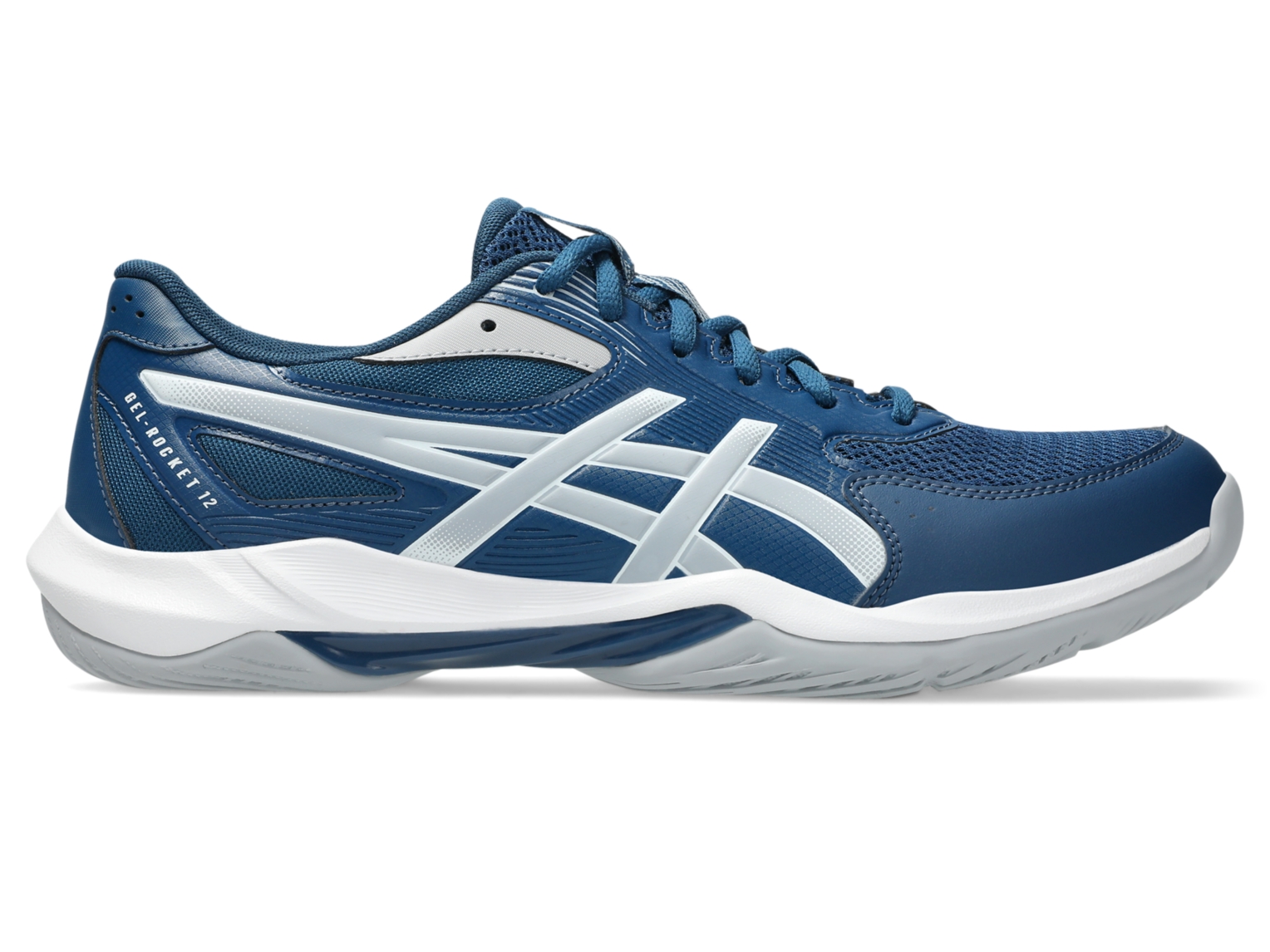 The GEL-ROCKET⢠12 (Wide) shoe has a good balance of stability and flexibility to move confidently on the courtā.