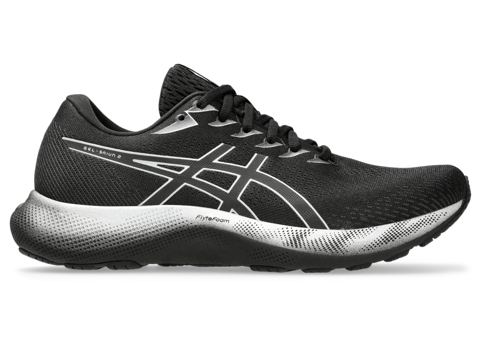 Versatile for an array of road running adventures, the GEL-SAIUN⢠running shoe is designed with advanced components to promote airflow and improve stability during your training. Featuring PU overlays that keep your feet stable during your stride, this shoe also implements mesh underlays that provide airflow to keep feet cooler and more comfortable. Lastly, this shoe is layered with our GEL⢠technology in the heel for improved cushioning during impact.
