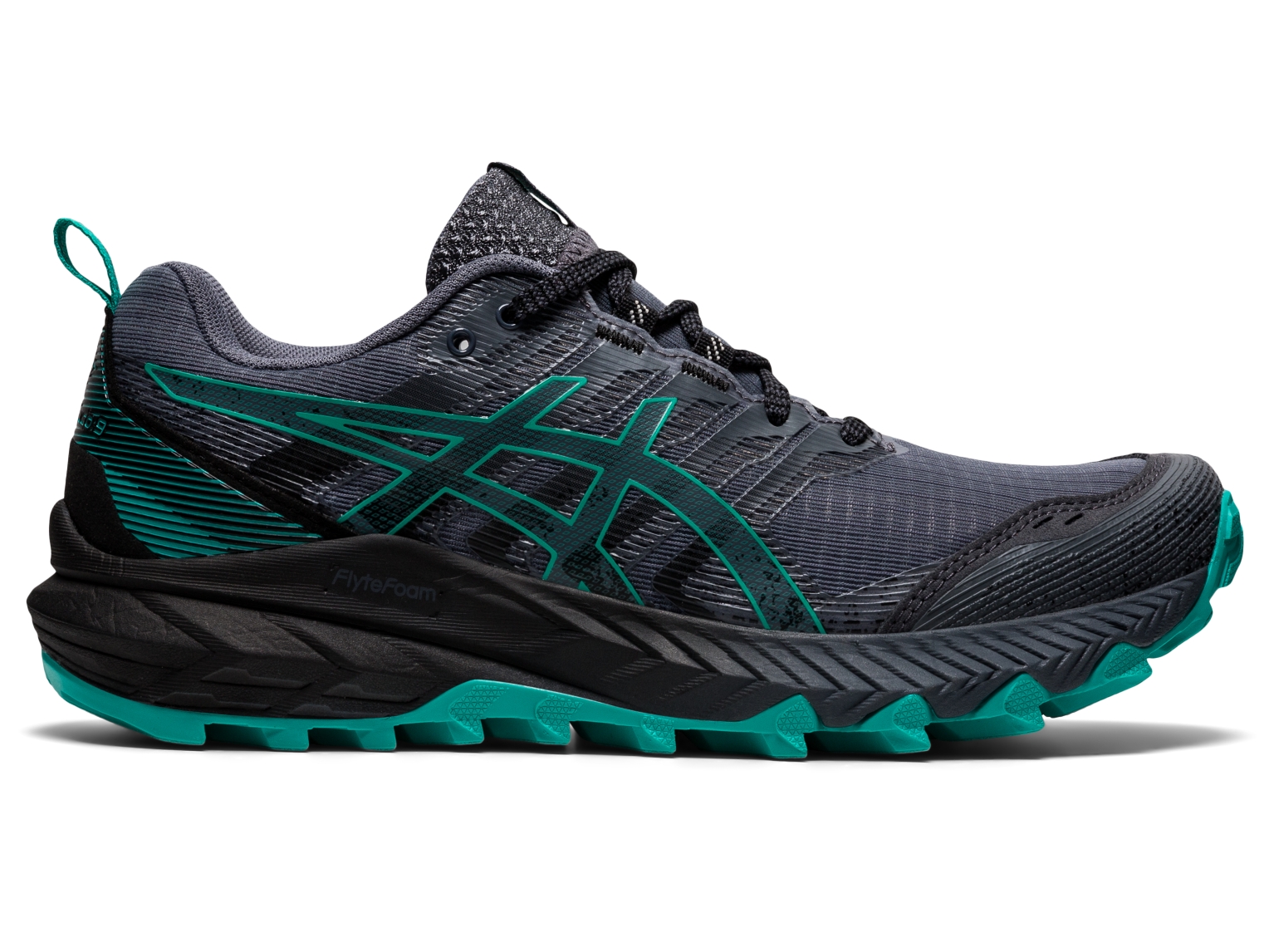 The GEL-TRABUCO⢠9 shoe has been re-engineered from top to bottom to assert itself as an all-around trail pioneer. Rugged and comfortable are the two terms that best describe this trail running shoe. It's for the off-road runner seeking excellent durability, protection, and grip. After reimagining the shoeās upper, this version weighs in at approximately one ounce (30gm) less than its predecessor. The advanced comfort comes from the FLYTEFOAMĀ® midsole material that's coupled with GELĀ® technology cushioning in the heel. Equipped with a DUOMAXĀ® support system that creates a more stable ride, this placement of foam on the medial side of the midsole offers a firmer density that keeps the foot from rotating inward too much (overpronation). The lugged outsole pattern features ASICSGRIP⢠rubber while incorporating an uphill and downhill lug pattern on the lateral and medial side of the shoe to improve traction on slippery terrain. Additionally, a rock protection plate helps the outsole stay flexible and shield the foot from abrupt terrain or trail debris. The GEL-TRABUCO⢠9 shoe is designed to help you fly through the trails with advanced traction both uphill and downhill, while the responsive midsole foam creates better propulsion throughout your off-road recon.