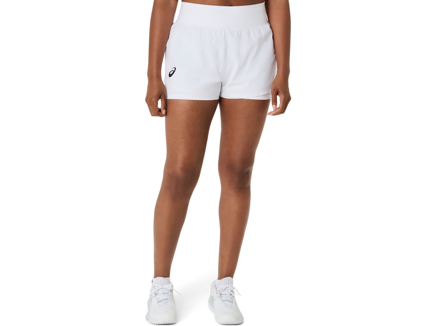 A mesh back yoke promotes ventilation, overlapping side slits for an expanded range of motion on the court, and a bonded waistband with integrated drawcord for enhanced close-to-skin comfort.