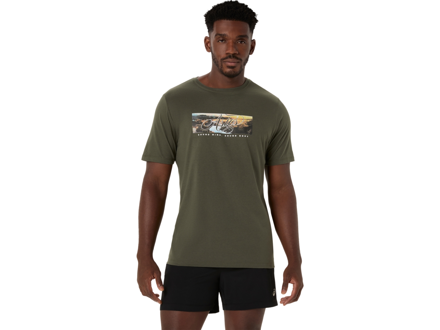 This comfortable knit short sleeve tee takes inspiration from mountainous settings in nature.